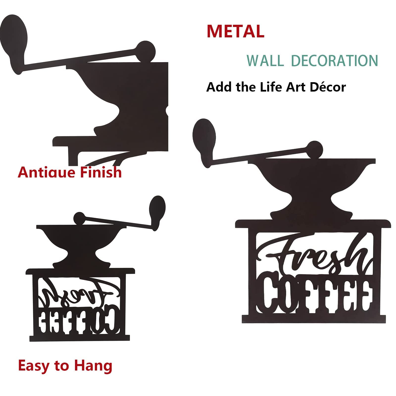 - Coffee Grinder Wall Art: The decorative metal wall decal is made out of lightweight black painted metal.