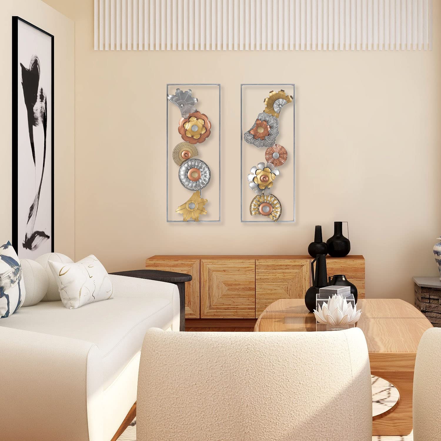 - ăMETAL WALL ARTă-This elegant statement piece, an amazing focal point on any wall, matched a wide variety of home decor themes. Great for living room, dining room, bathroom, bedroom, study, office, hotel, restaurant, apartment,etc. Easy to hang with two holes on the back,No assembly required.